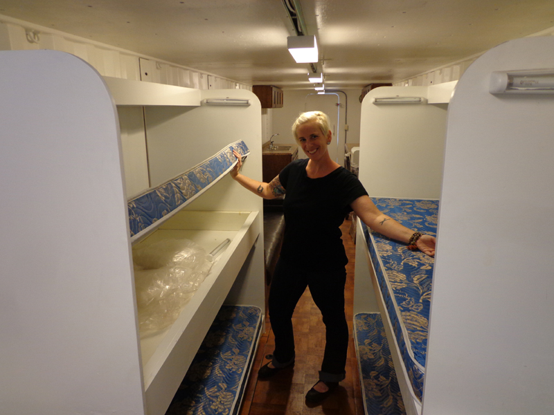 | The following photos illustrate how we build a 20' x 9' 6" oversized shipping container into an underground survival shelter. First, we flip the container upside-down so the wooden floors become the ceiling, then we remove the car carrier from inside. Next, we weld in angle irons to hold the floor supports, then we install the wooden floors with the center boards removable so you can store provisions under the floor. Next, we add in the 1/4" steel bulkhead and hinge the door. Next, we paint the interiors and start bringing in the counters and install the bunk beds. Next, we wire the shelter for 12 volt AC/DC then install the ceiling lights and electrical outlets. When finished this particular shelter will have 24" of storage under the floor which is huge compared to the storage under the pipe shelters. When this shelter is finally done, it will have painted walls, linoleum floors, storage under the beds and floors and feel more like a New York apartment than a bomb shelter. You must cover shelter with concrete to make water-proof!. |