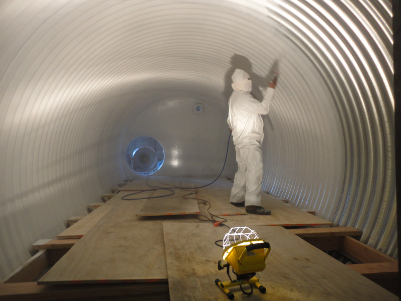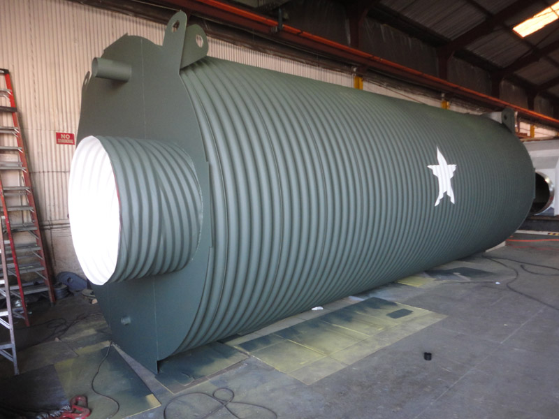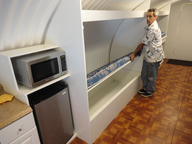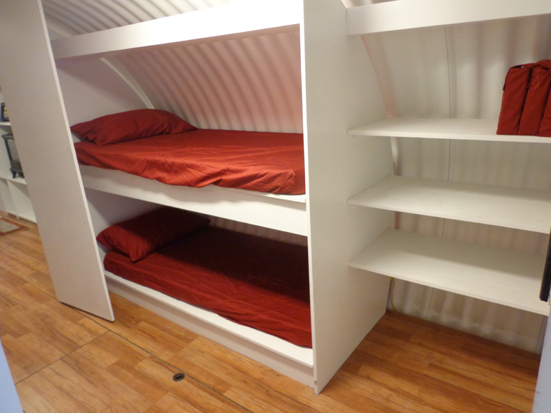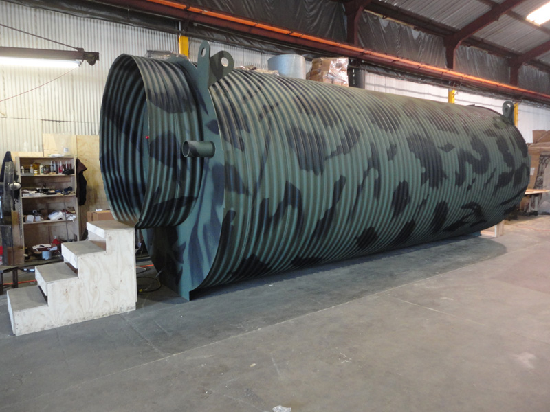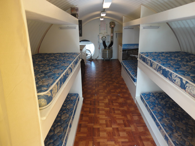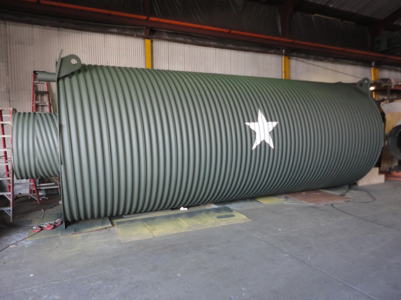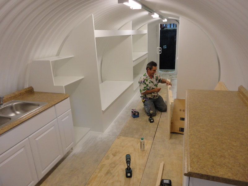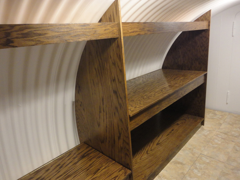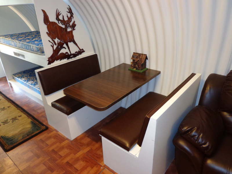 The following photographs illustrate our standard 39' stock 8-9 man shelter with a painted and finished interior. All corrugated pipe models include NBC air filtration system, blast hatch, escape hatch, beds, kitchen, under floor storage, under-bed storage, sink, refrigerator, microwave and linoleum floors.