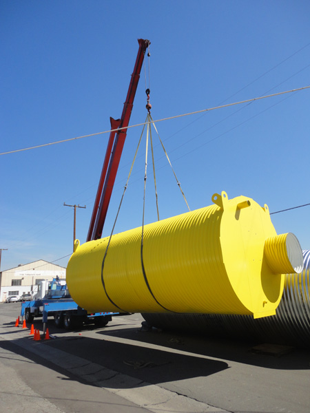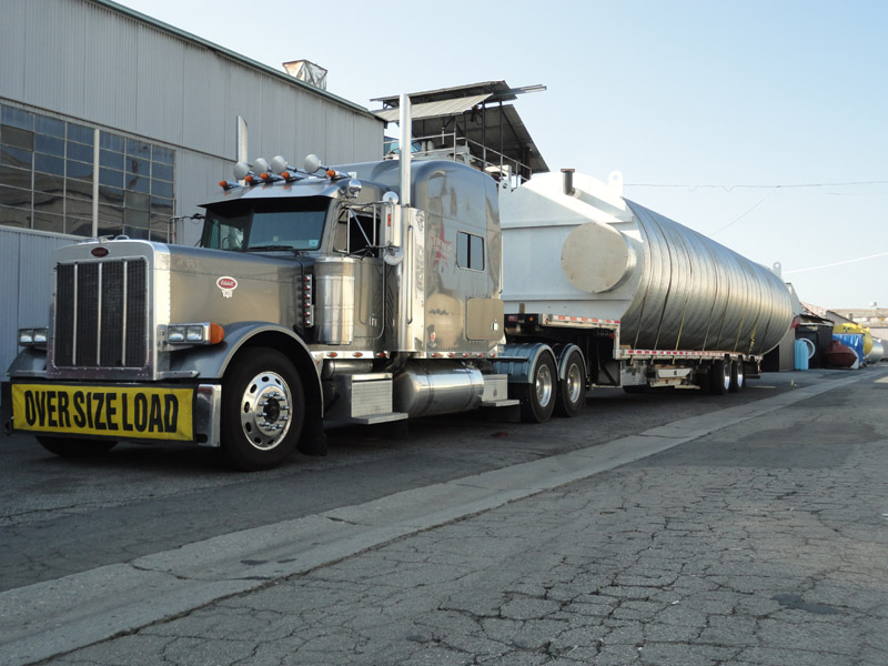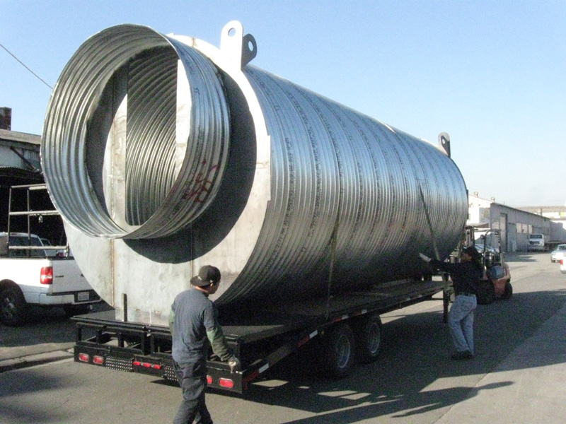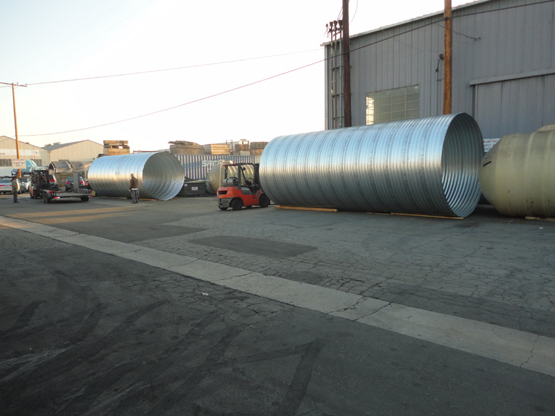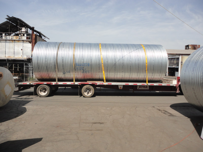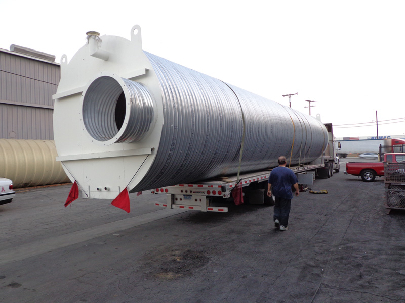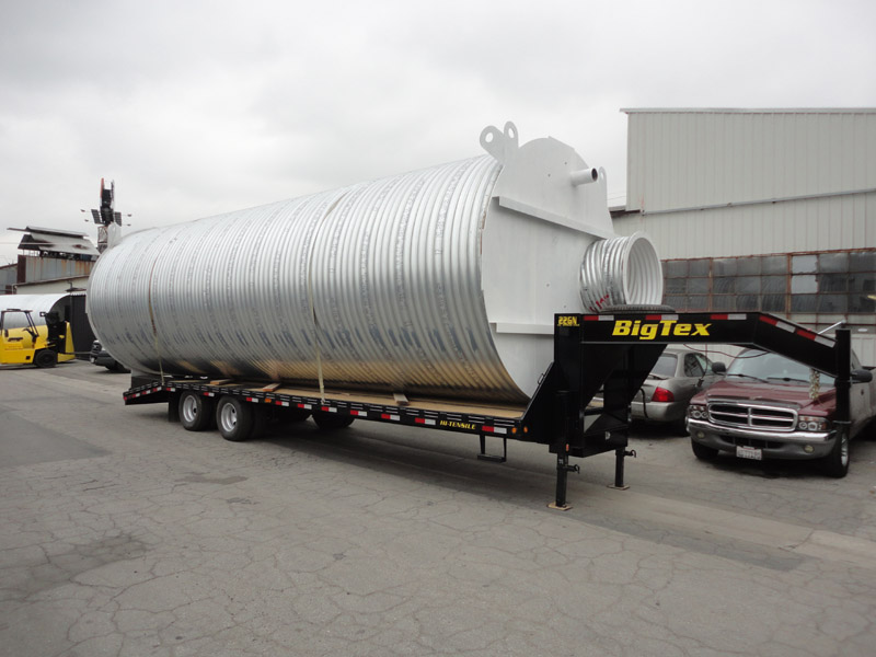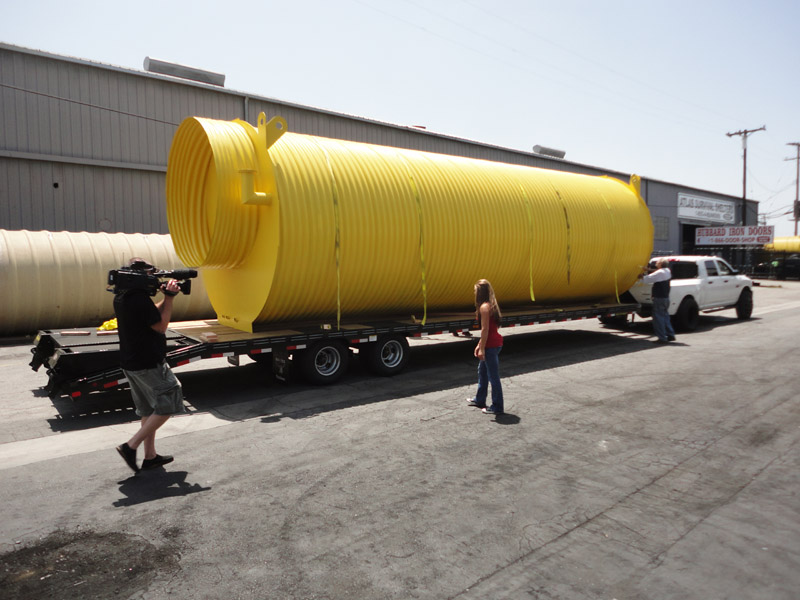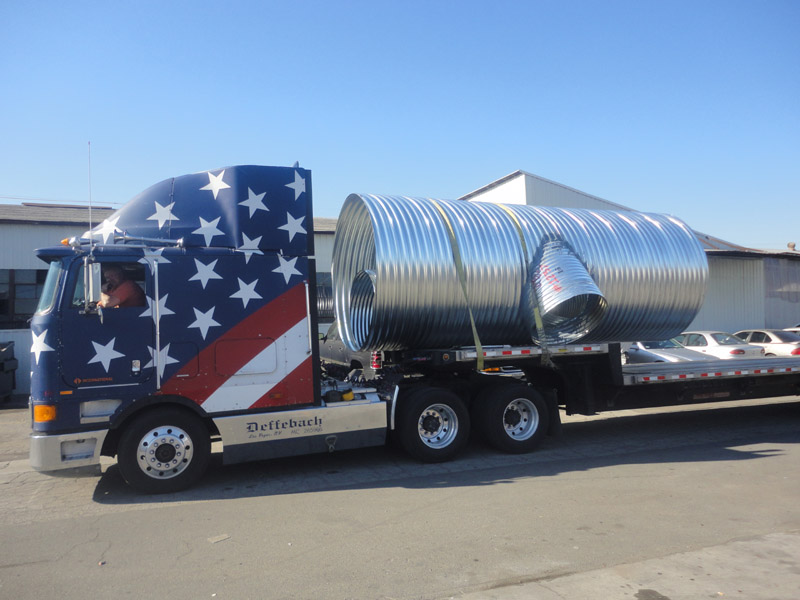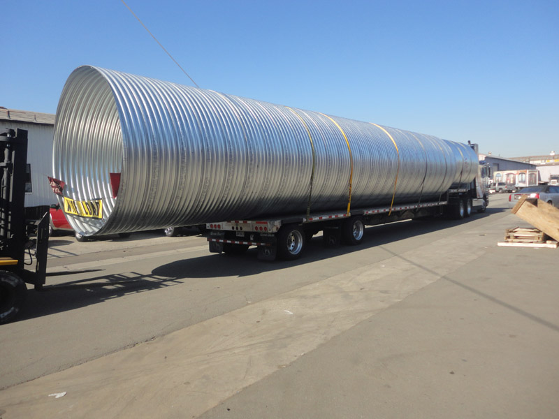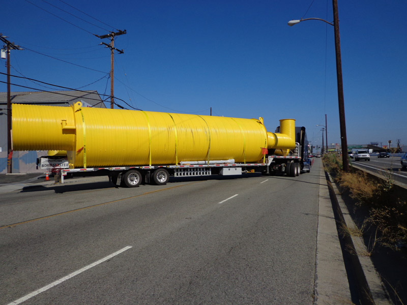 This photograph shows a 10' x 50' pipe being delivered to our plant.