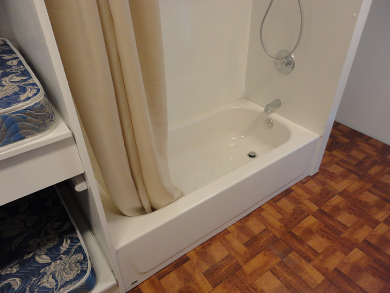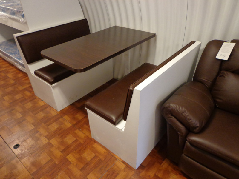 This is our STANDARD INTERIOR FINISH. White paint, lineloum floors, double bunk beds and counter tops