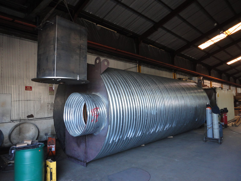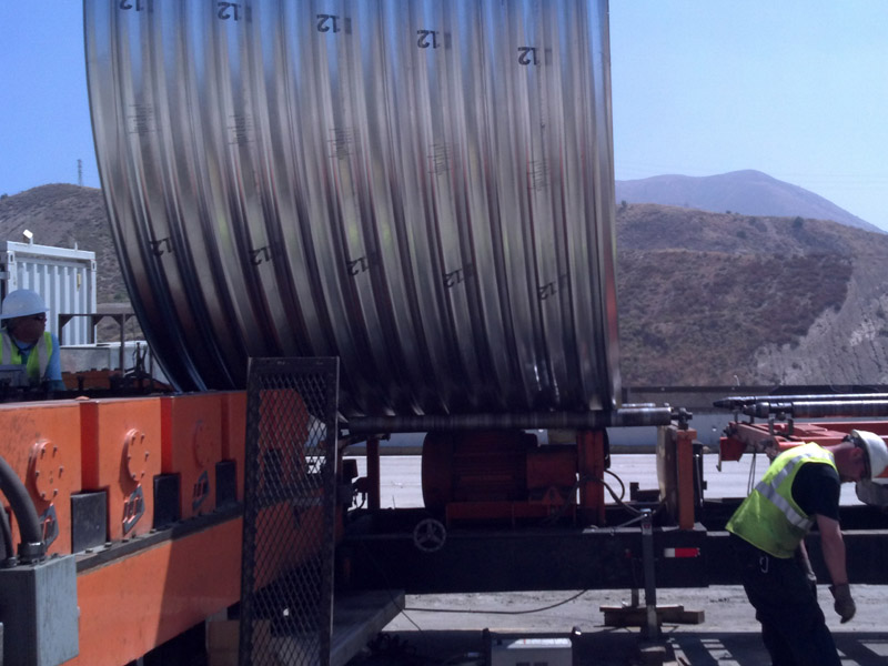 This photograph shows a 8' x 20' pipe that will be a generator pod.