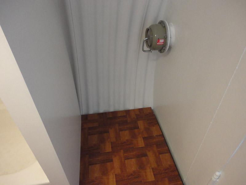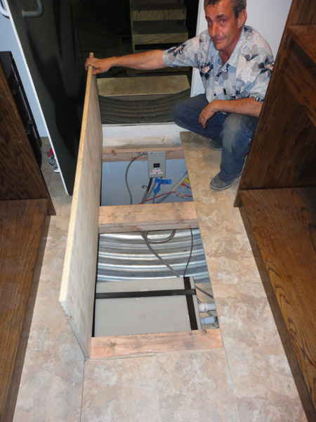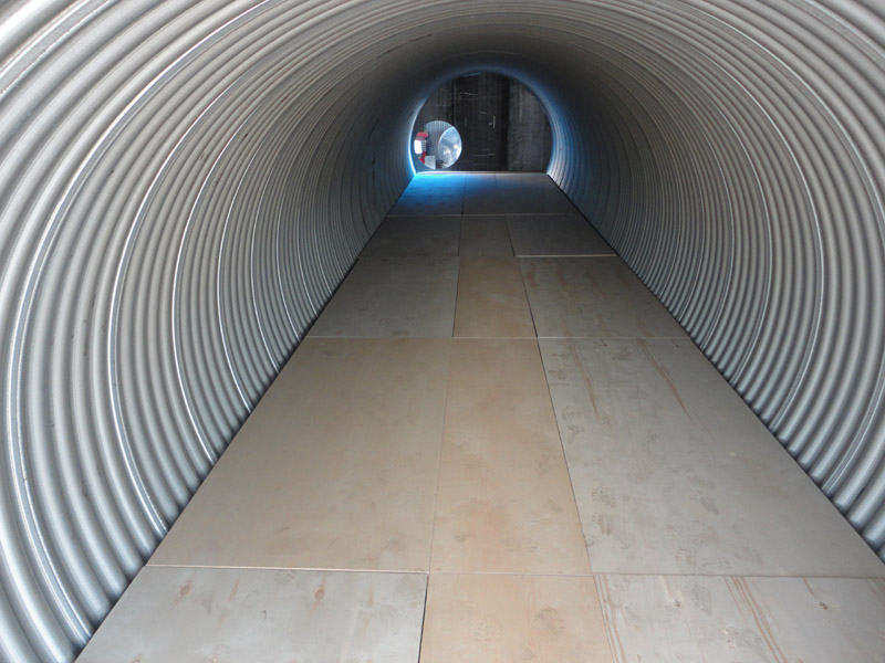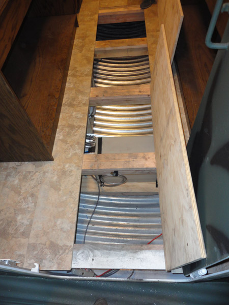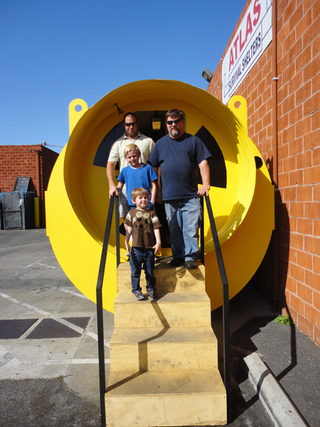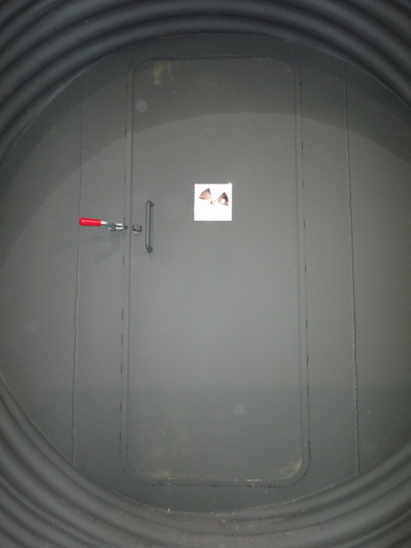 This photo shows the escape hatch suspended over the 42" escape exit pipe.