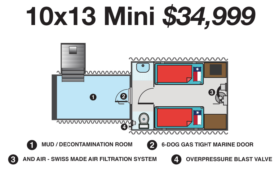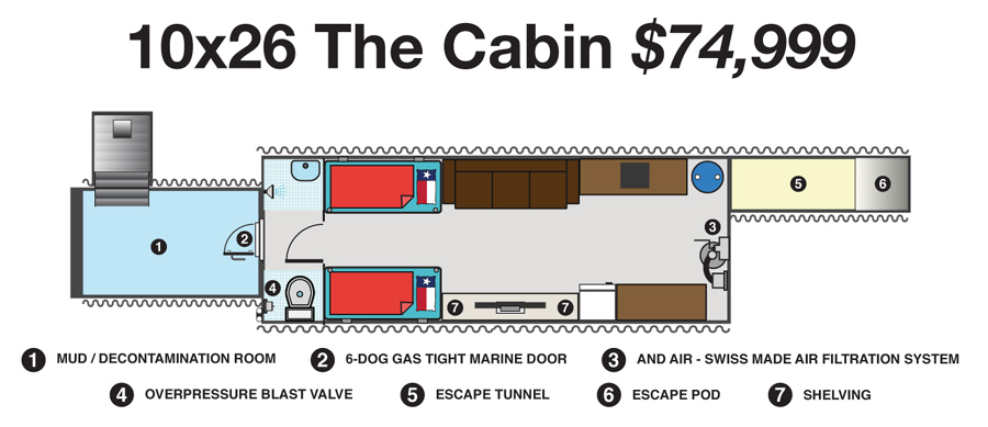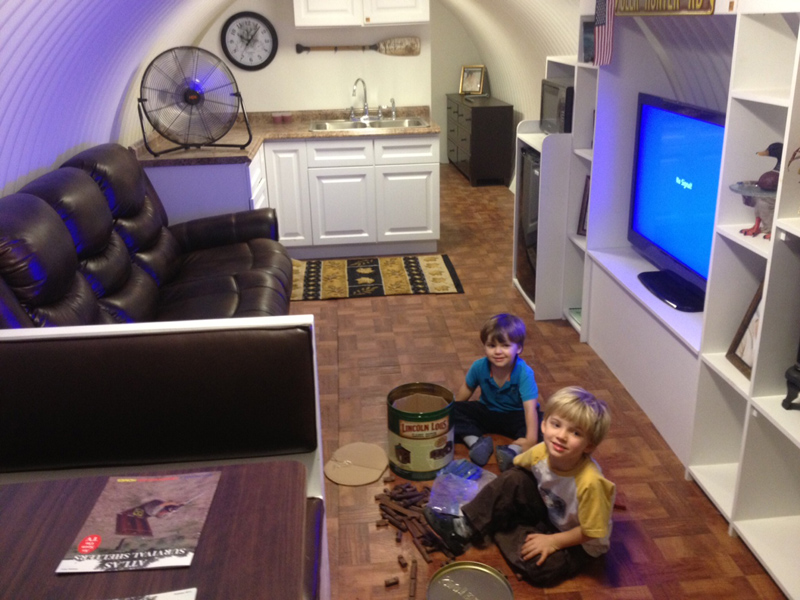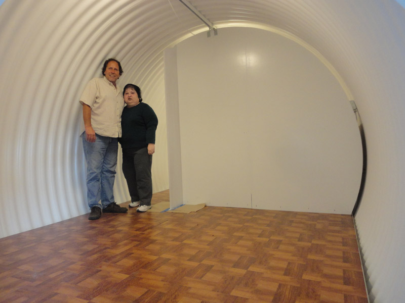 Let Atlas Survival Shelters build the basic shelter with our patented laser-cut bulkheads with interior blast door and our escape tunnel with our patented escape hatch. Then you can do the rest! The lower price shown with each shelter is for a basic plain shelter that will have the air filtration system installed, the mud room attached, laser cut interior door, bolt-on escape tunnel with the escape hatch, galvanized bolt-on air pipes, bolt-on entrance pipe, blast hatch, overhead lights with electrical outlets installed, removal center boards, , and painted interior walls. "You can finish the interior yourself".